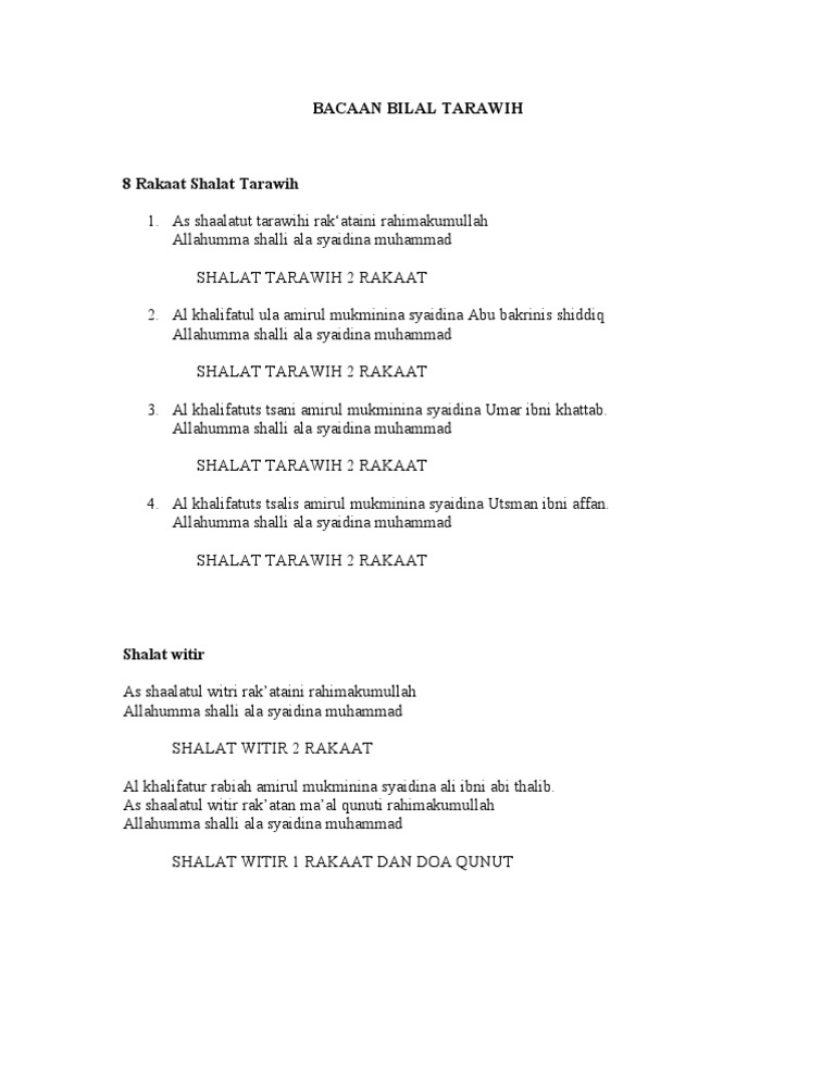 Bacaan Bilal Tarawih 8 Rakaat Pdf